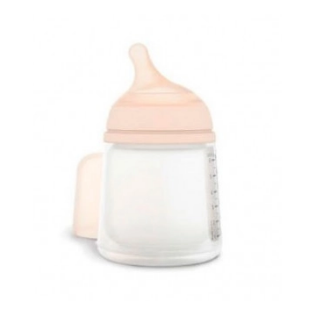 Biberón de flujo adaptable a la fuerza de succión del bebé. Con tetina de silicona ultra fina e inclinada. Gracias a su bolsa anti-cólico evita que se produzca la ingesta de aire.