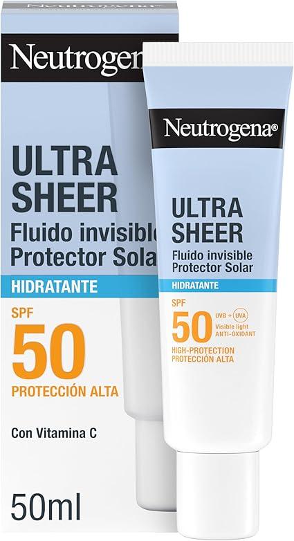 - Detalles del envío - Neutrogena Ultra Sheer Fluido Invisible Hidratante SPF50, crema hidratante facial con protección solar 50, dermatológica y oftalmológicamente testada, para piel normal a seca.